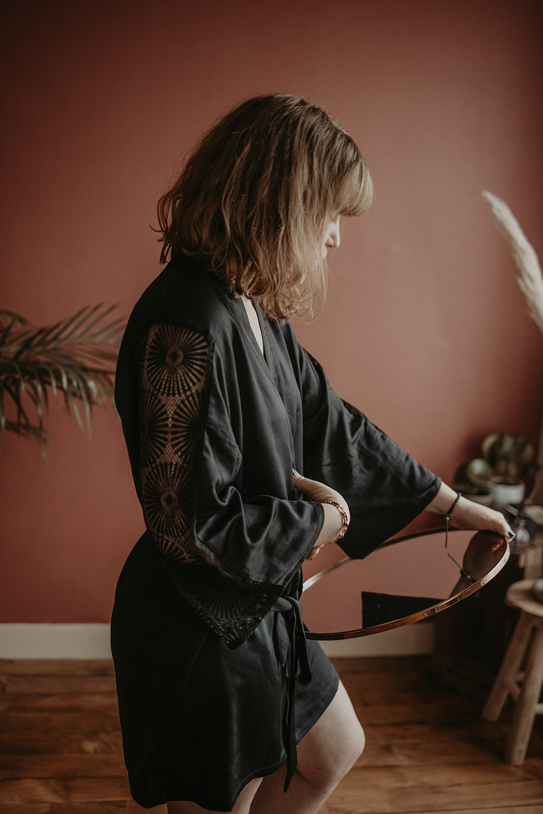 Je propose que vous soyez dans une tenue agréable, confortable et jolie. Pour les femmes ça peut passer par de jolis sous-vêtement que vous vous êtes spécialement offert pour l'occasion, un grand gilet doudou, un beau kimono,… (je vous prêtes des kimonos si besoin).